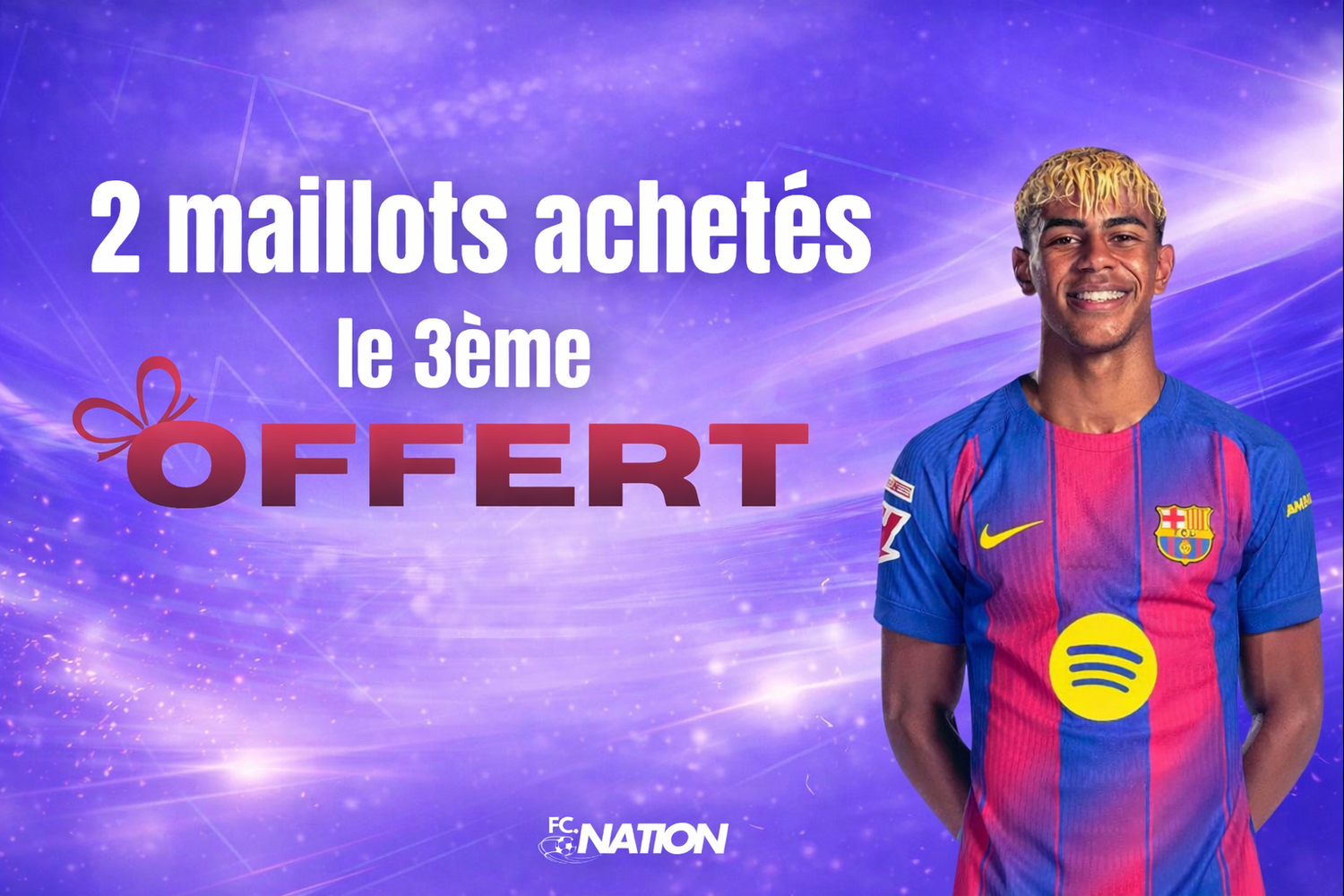 Ajoute juste 3 maillots dans ton panier : le 3ᵉ passe automatiquement à 0€ au moment du paiement. Rien à faire, c’est instantané.