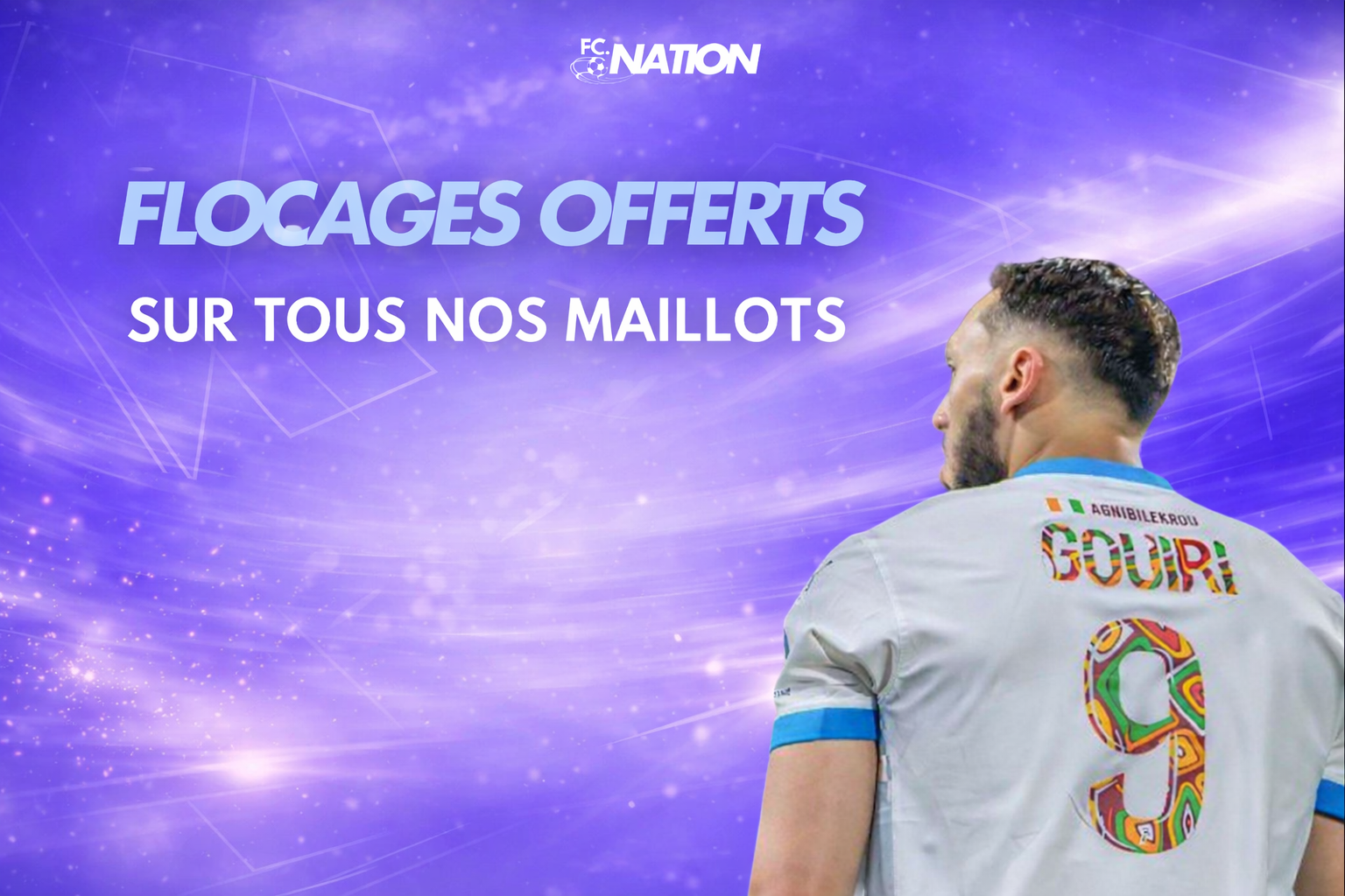 Nom, numéro et texte sous le numéro – ton maillot, ta signature.